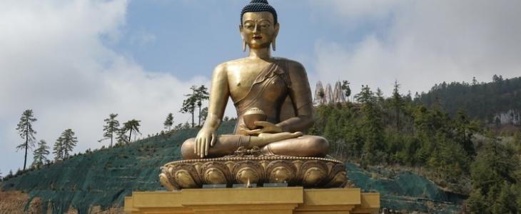 El Buddha Dordenma se encuentra en lo alto de una colina en el Parque Natural Kuenselphodrang y tiene vistas a la entrada sur del valle de Thimphu. La estatua cumple una antigua profecía que se remonta al siglo VIII d.C. que fue descubierta por Terton Pema Lingpa (Descubridor de tesoros religiosos) y se dice que emana un aura de paz y felicidad para el mundo entero.